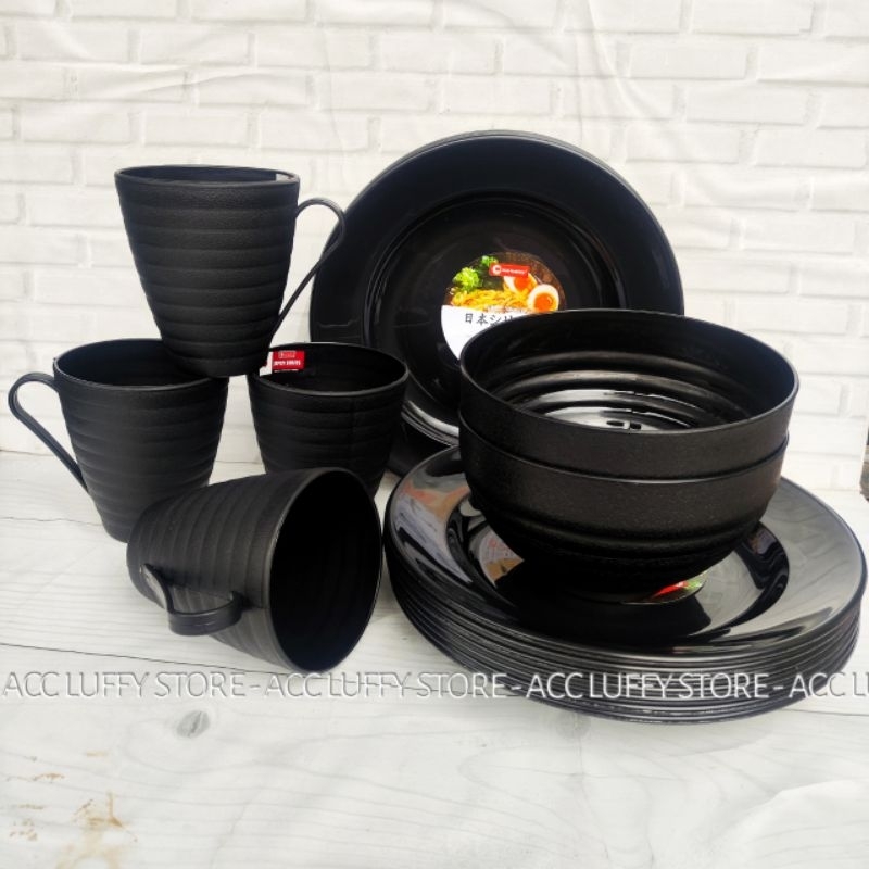 PAKET RAMEN HITAM ISI SATU LUSIN/12PCS ( PIRING RAMEN HITAM + MANGKOK RAMEN HITAM + GELAS RAMEN HITAM) PIRING RAMEN HIT