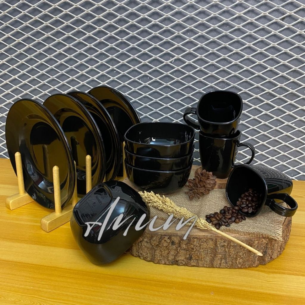 paket piring diner semi milamine bahan tebal kokoh sangat brkualitas dapat satu lusin paket campur glas mangkok dan piri