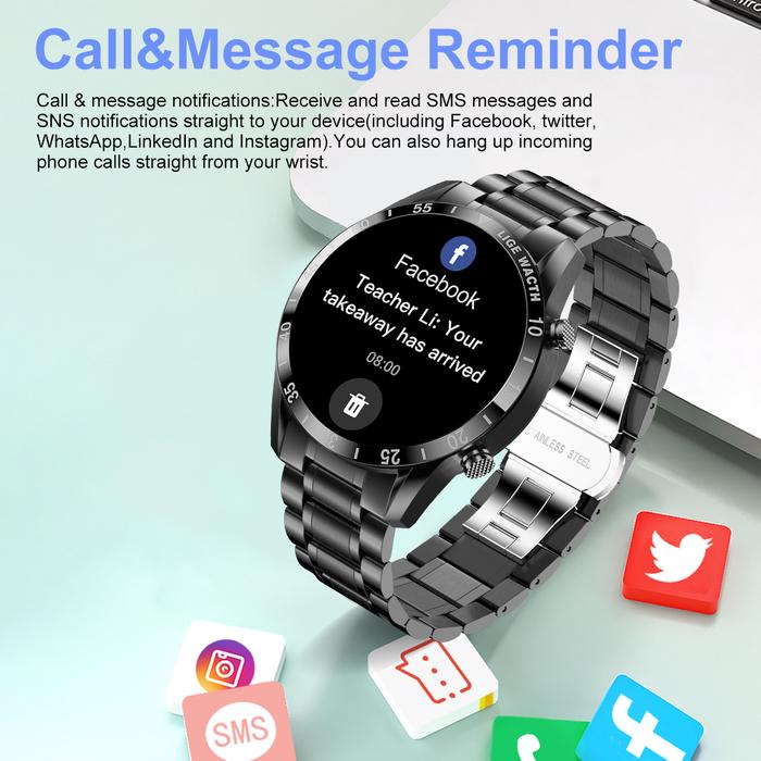 LIGE ASLI JAM TANGAN PINTAR PRIA LAYAR SENTUH LINGKARAN PENUH SABUK BAJA MEWAH PANGGILAN BLUETOOTH OLAHRAGATTAHAN AIR SM