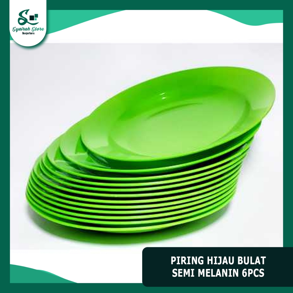 Piring Plastik Semi Melamin 6 PCS, Warna Hijau, Anti Pecah, Serbaa untuk Makan & Hidangan
