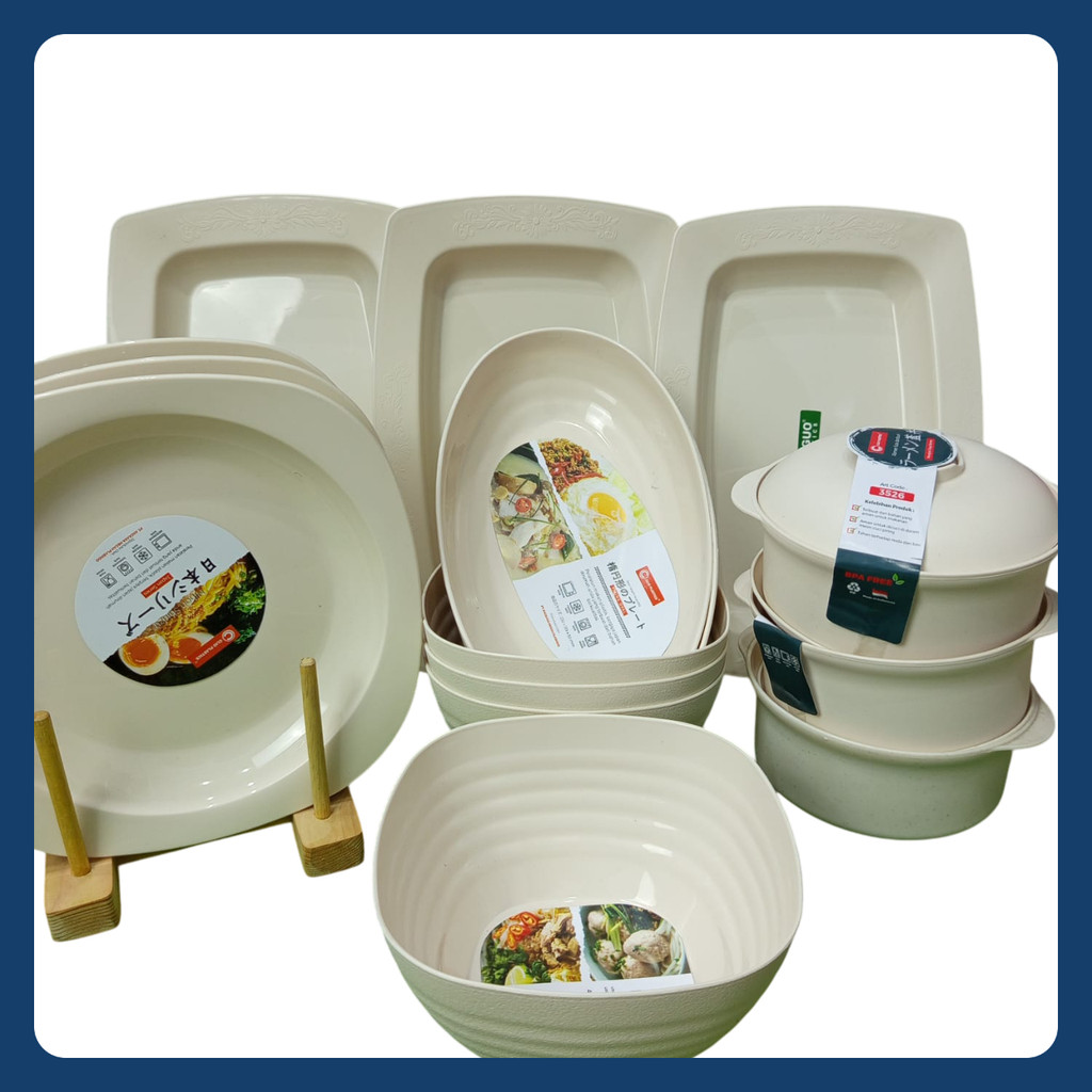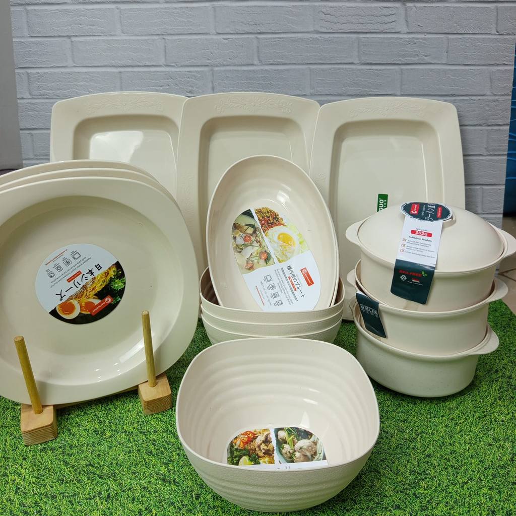 Paket Hemat Piring Mangkok + Tutup Japan - Mangkok Ramen Plastik BPA Free Foodgrade - Kitchenware