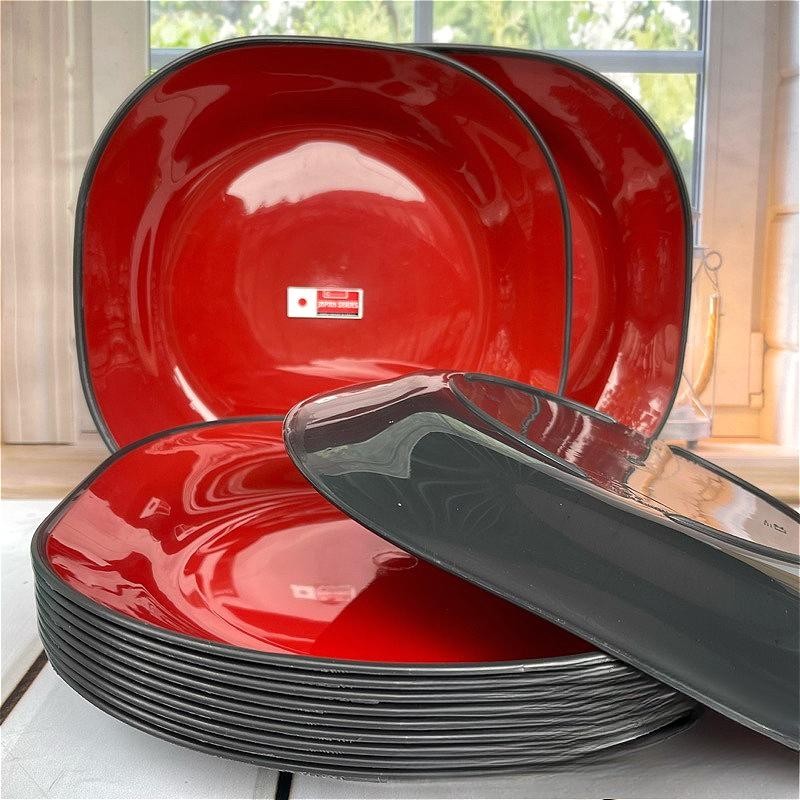 12 Pcs Piring Mie Ramen Piring Makan 9 Inch Plastik Tebal New Cornelius Anti pecah Warna Merah Hitam