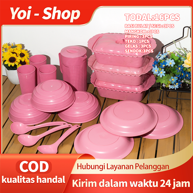 Yoi - (SET 16 Pcs) Set Peralatan Makan / Set Piring, Mangkuk, Teko, dan Gelas / Cocok untuk Acara Makan Bulat yang Spes