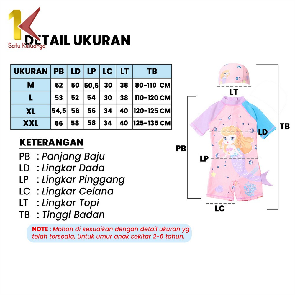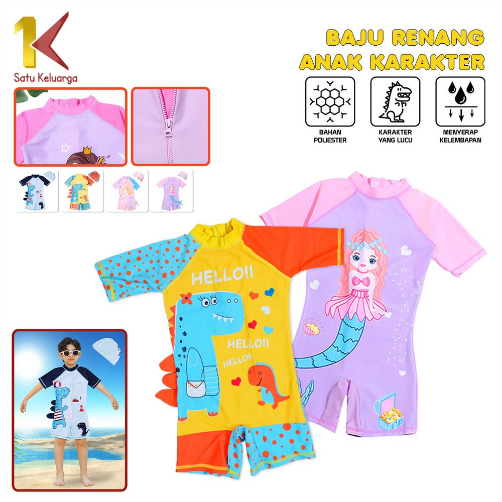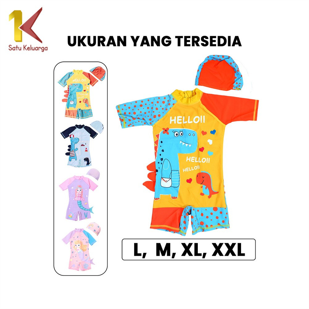 Satu Keluarga Baju Renang Anak Perempuan Karakter P587 Swimsuit Kids Dino Unisex Mermaid Set Topi / Pakaian Renang Anak