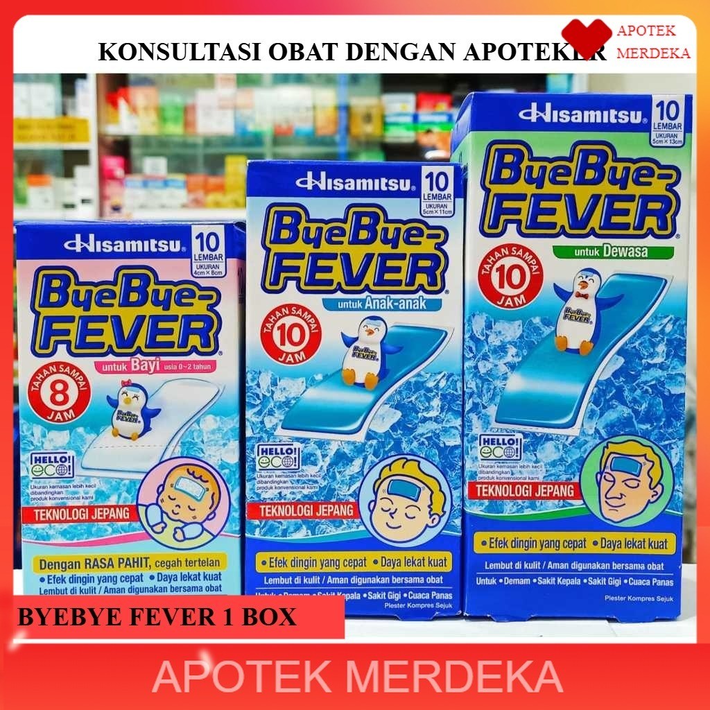 ByeBye Fever 1 Box isi 10 Lembar Kompres Demam Bye Bye Fever Untuk Bayi / Anak / Dewasa