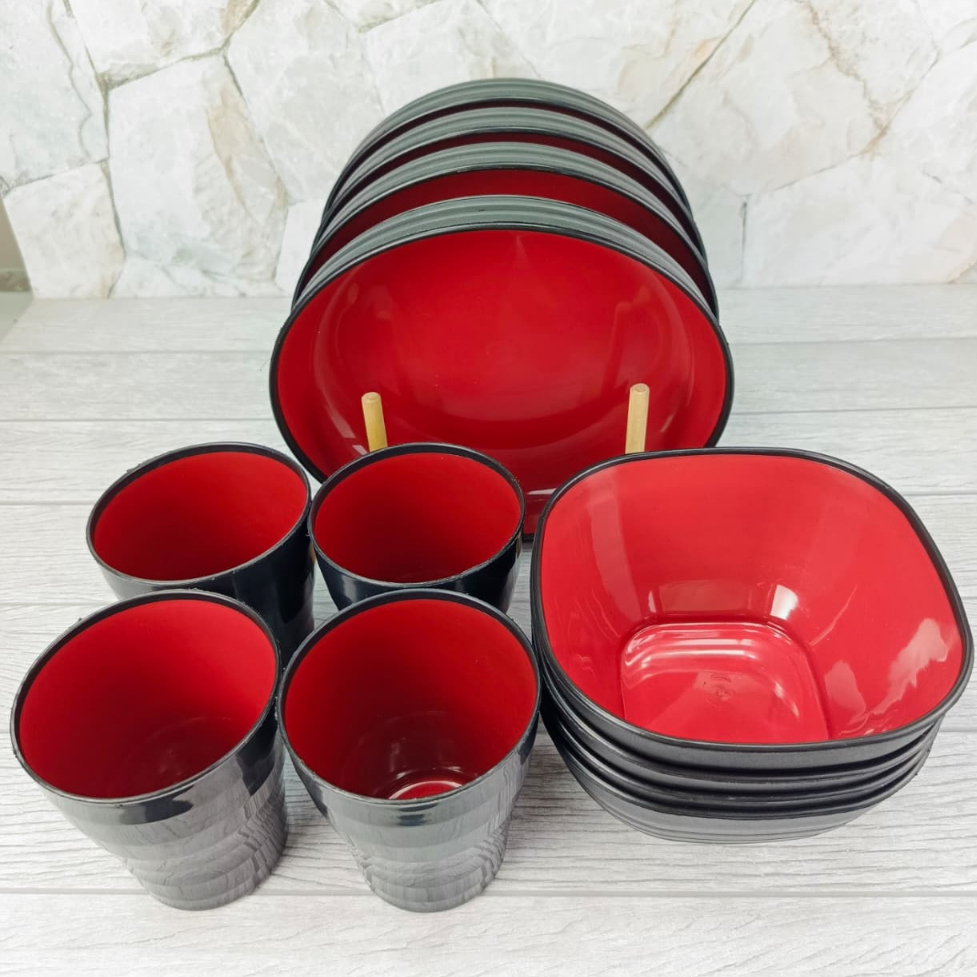 Paket Komplit Ramen Isi 12 PCS 4 Piring • 4 Mangkok • 4 Gelas Plastik Ramen | BPA Free & Anti Pecah