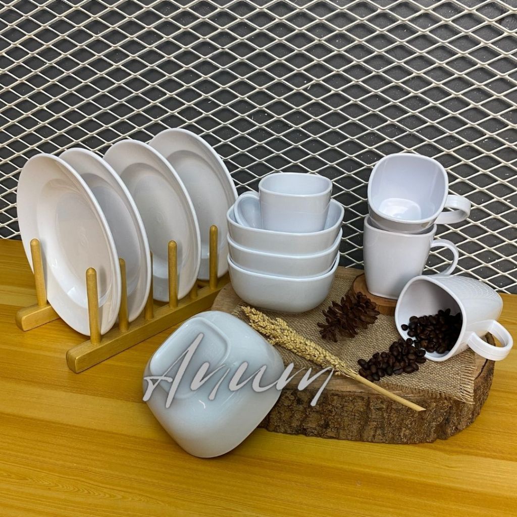 paket piring diner semi milamine bahan tebal kokoh sangat brkualitas dapat satu lusin paket campur glas mangkok dan piri