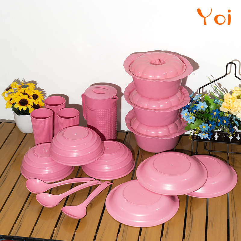 Yoi - (SET 16 Pcs) Set Peralatan Makan / Set Piring, Mangkuk, Teko, dan Gelas / Cocok untuk Acara Makan Bulat yang Spes