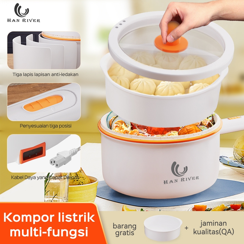 HAN RIVER Panci Listrik HRDHG01 – Fry Pan Electric 2in1 2L, Panci Listrik Multifungsi Anti Lengket, Cepat Panas & Hemat