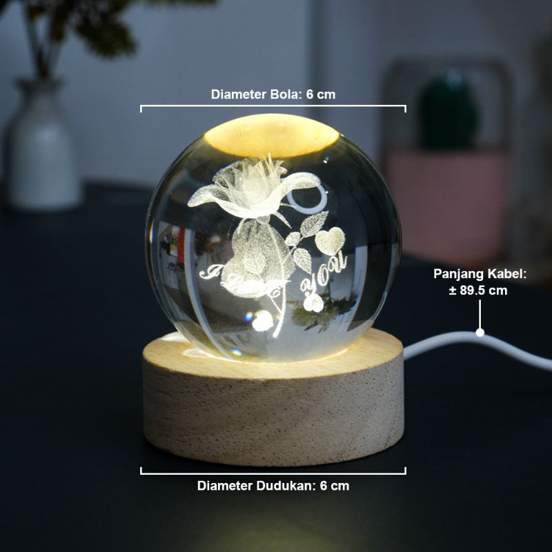 Lampu tidur bola kristal 3D warm white USB 3W lampu 3 dimensi lampu ilusi lampu tidur bola kristal unik keren
