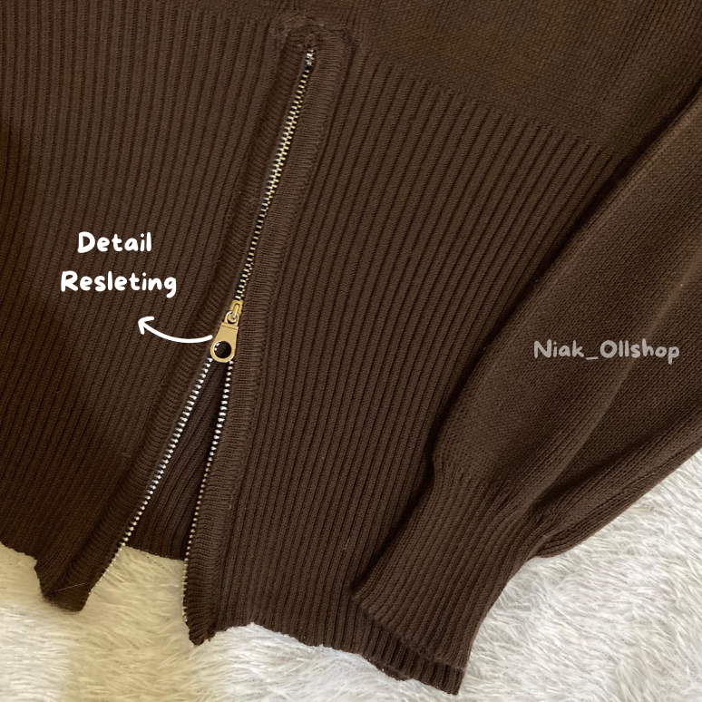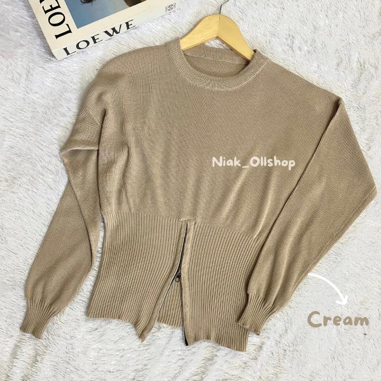 NIAK- Calaa Sweater Rajut Resleting zipper Bawah | Atasan Rajut Wanita Terbaru Kekinian