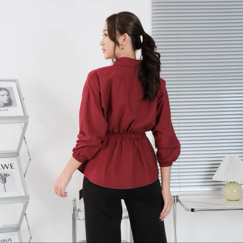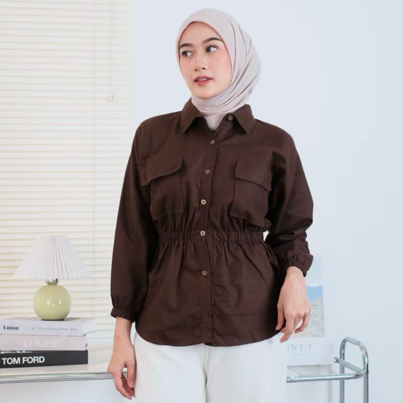 Beena Top Blouse Atasan Wanita Kemeja Linen Serut Saku Depan