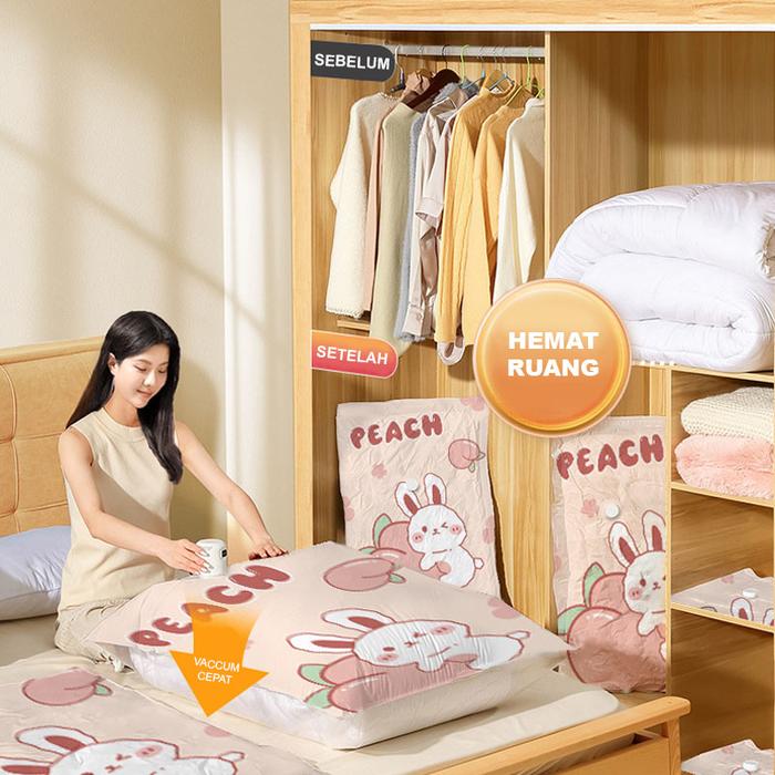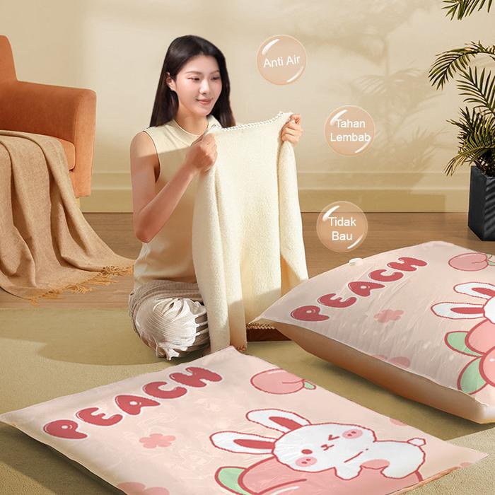 U-LIVING SET 5PCS PLASTIK VACUUM BAJU MOTIF KANTONG PAKAIAN TRAVEL ANTI-AIR DIPAKAI BERULANG PVS002 - SET5PC MIX PUTIH