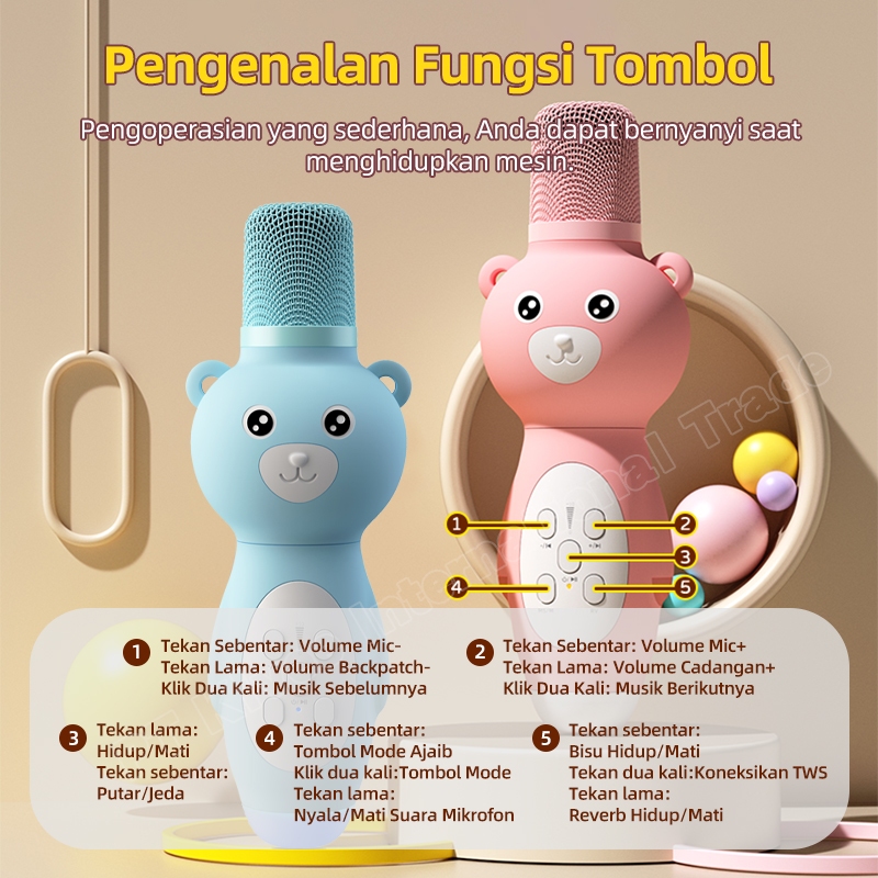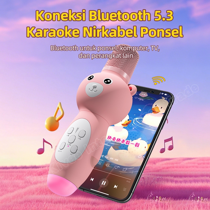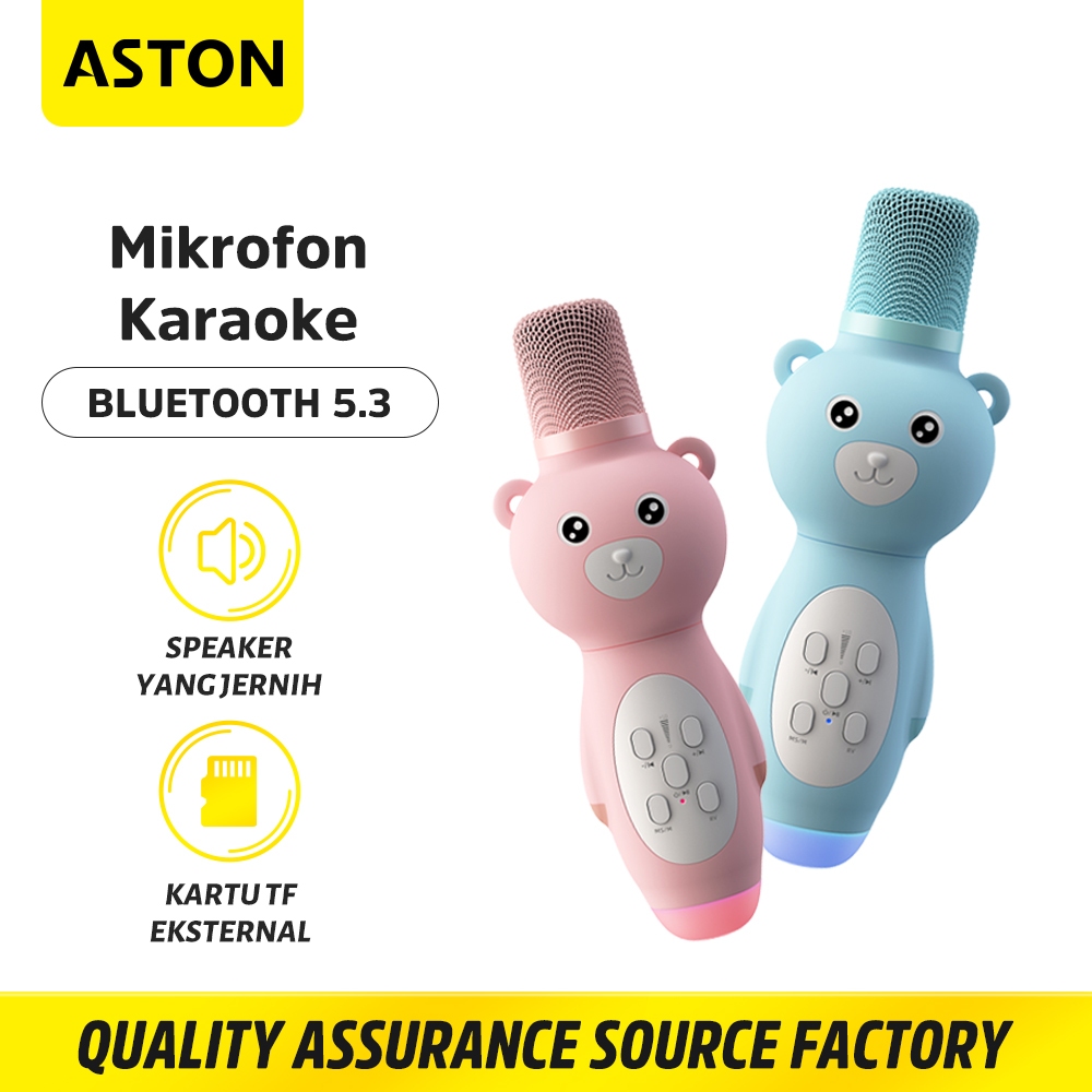 ASTON Mic Wireless Anak Bluetooth 5.3 AT-US51 Silikon Pink Cute Kartun Macaron Karaoke Live Original