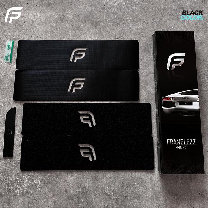 Framelezz Dudukan Plat Nomor Mobil Hitam - 4 Pcs Hook & Loop, Baut Besi, Tidak Perlu Bor, Vibration Free, Kualitas 3M, U