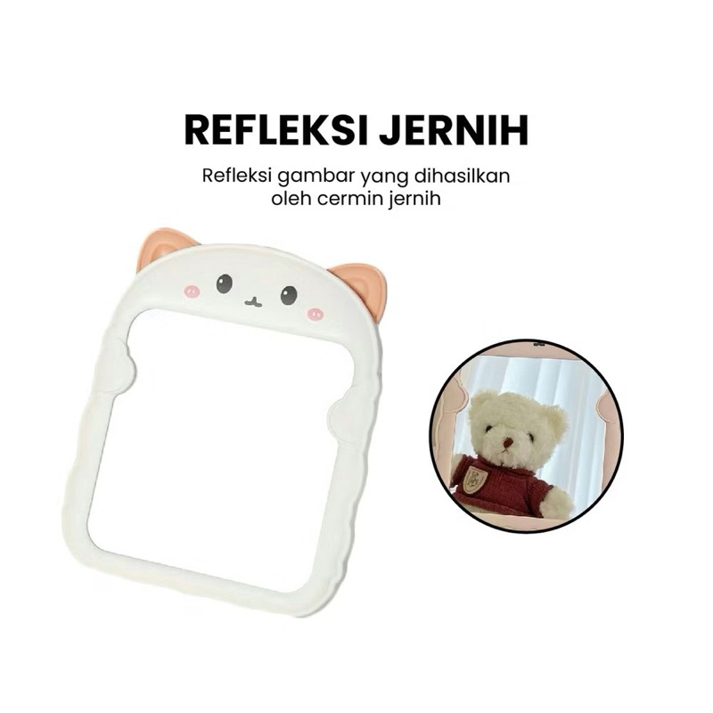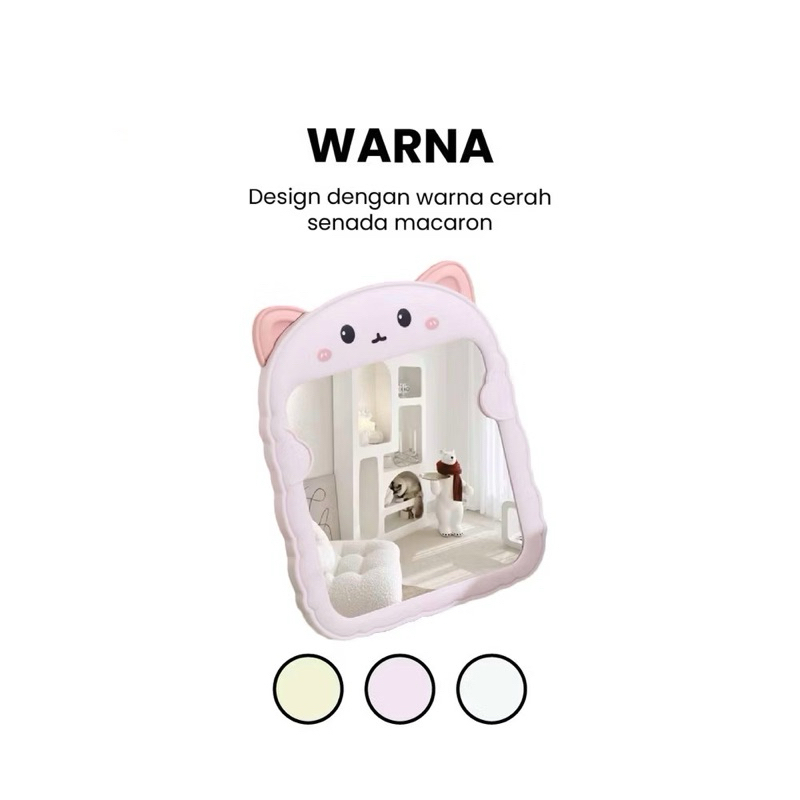 Cermin Meja Rias Bentuk Kucing K153 Cermin Lipat Portable Kaca Rias Make Up Karakter Cermin Rias Duduk Kaca Lucu