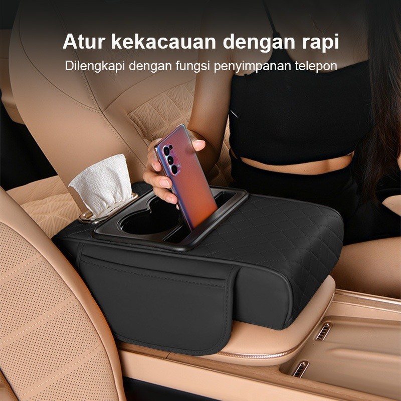 Console Box Mobil 4 in 1 Premium - Tempat Botol Minum + Armrest Pad + Kotak Tisu + Storage Tambahan | Desain Ergonomis