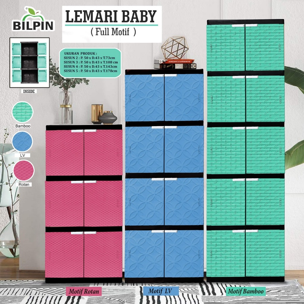 AKAKO - LEMARI PAKAIAN PLASTIK BABY BILPIN MOTIF ROTAN SUSUN 4 DAN 5