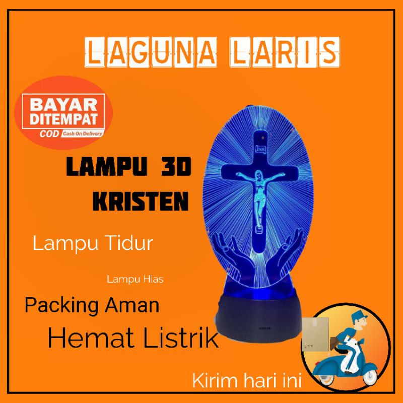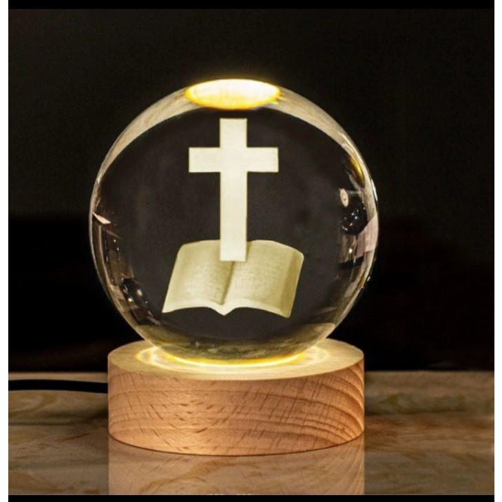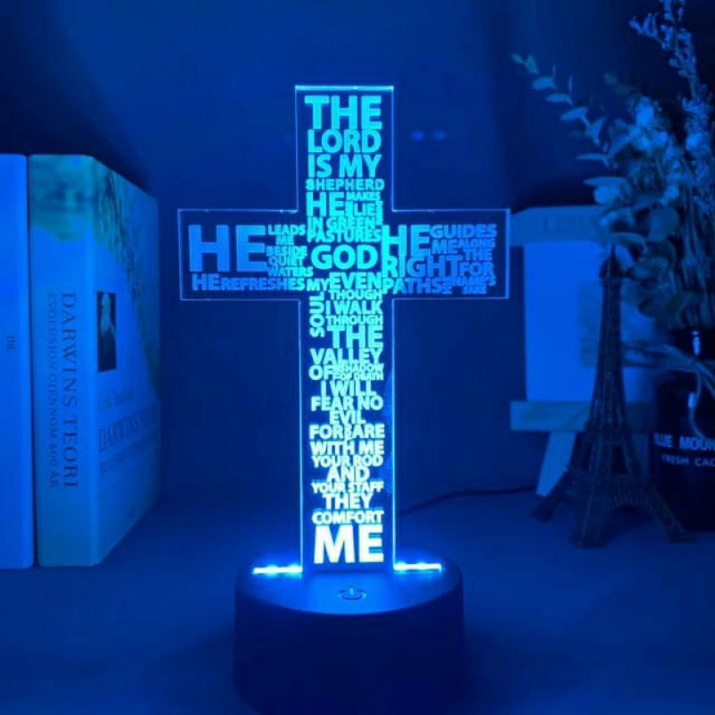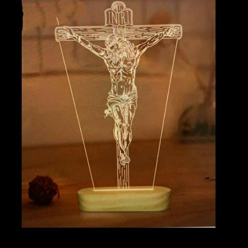 Lampu LED Tidur Transparan 3D Karakter Agama Kristen Yesus Salib Hias Natal Meja