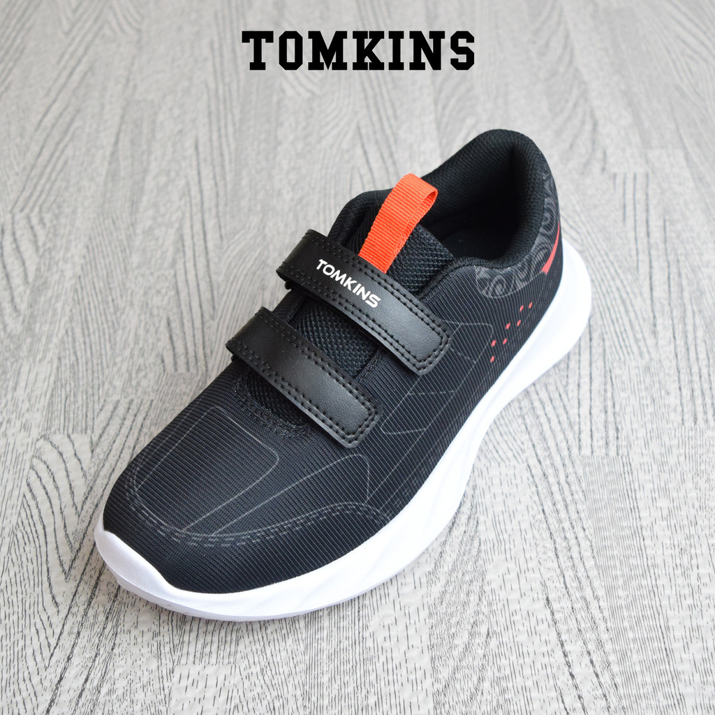 TOMKINS Boku - Hitam Merah Sepatu Sekolah Perekat Anak Remaja