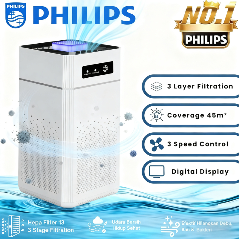 PHILIPS Air Purifier HEPA Filter 13 Ion Negatif 360°+UV-C Pembersih Udara