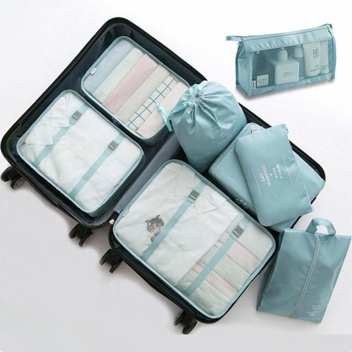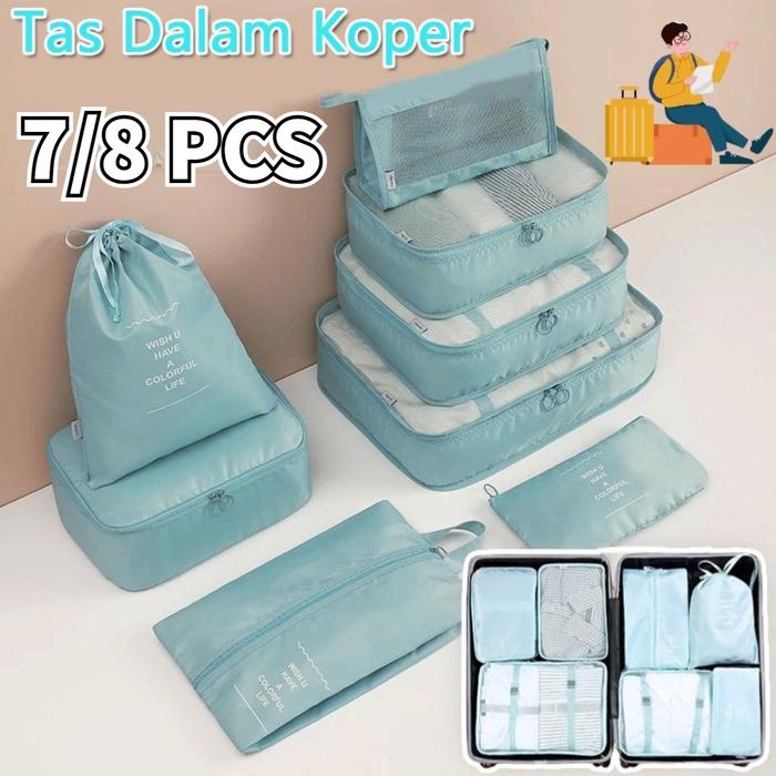 TAS TRAVEL 8 IN 1/SET PENGATUR PAKAIAN/SET PENGATUR PERJALANAN SERUT - HITAM (7PCS)