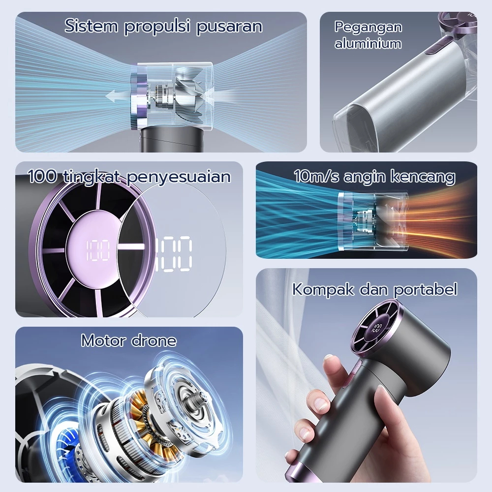 AUSBO Kipas Angin Portable 5 Speeds Adjustable USB Turbo Kipas/Turbokipas untuk Rumah, Kantor, Perjalanan