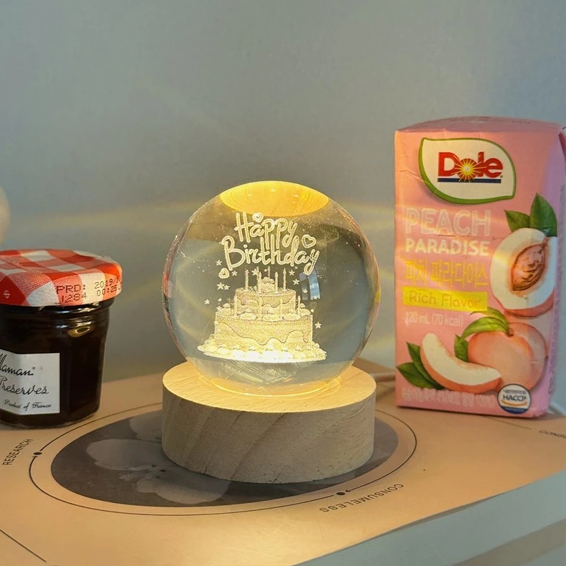 SUITIN Lampu Buat Kamar Tidur Lampu Hias Led Lampu Hias Kamar Tidur Hadiah Spesial Lampu Malam Bulan Bola Kristal Happy Birthday Hadiah