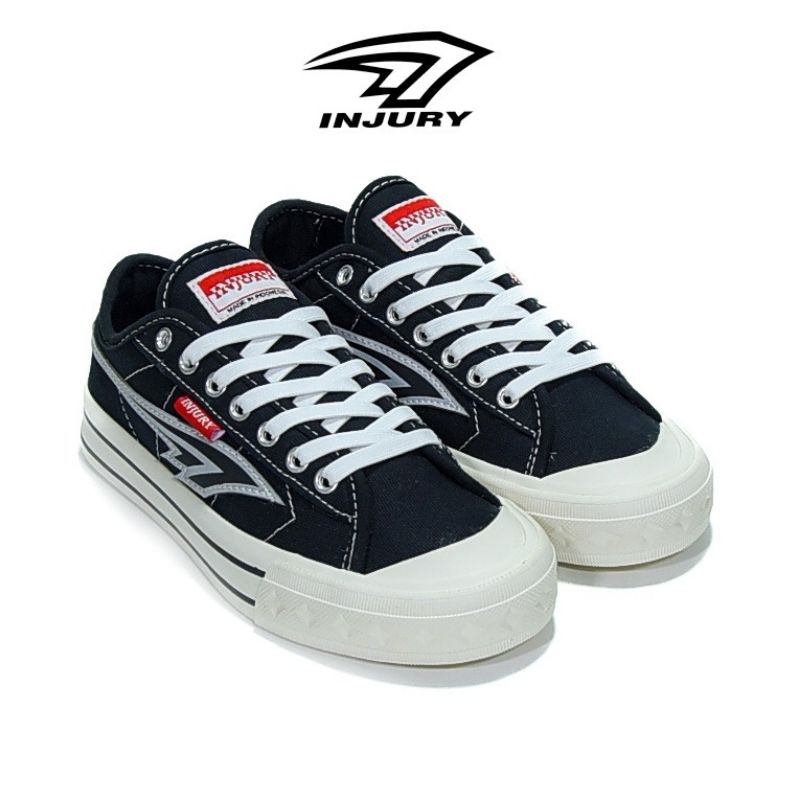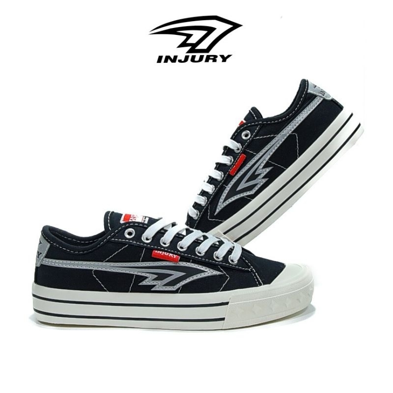 Injury - Sepatu Sneakers Kasual Pria Wanita Sepatu Sekolah Pria Wanita Everest Hitam Putih FLASH 36 - 45