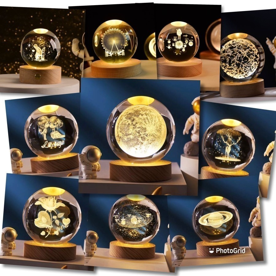 Lampu Kamar Tidur Lampu Hias 3DLED Lampu Hias Kamar Tidur Hadiah Khusus Lampu Malam Bola Kristal Anak-anak