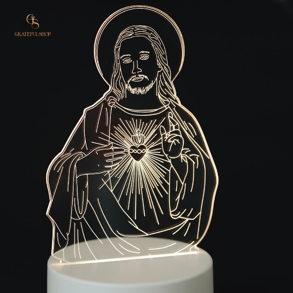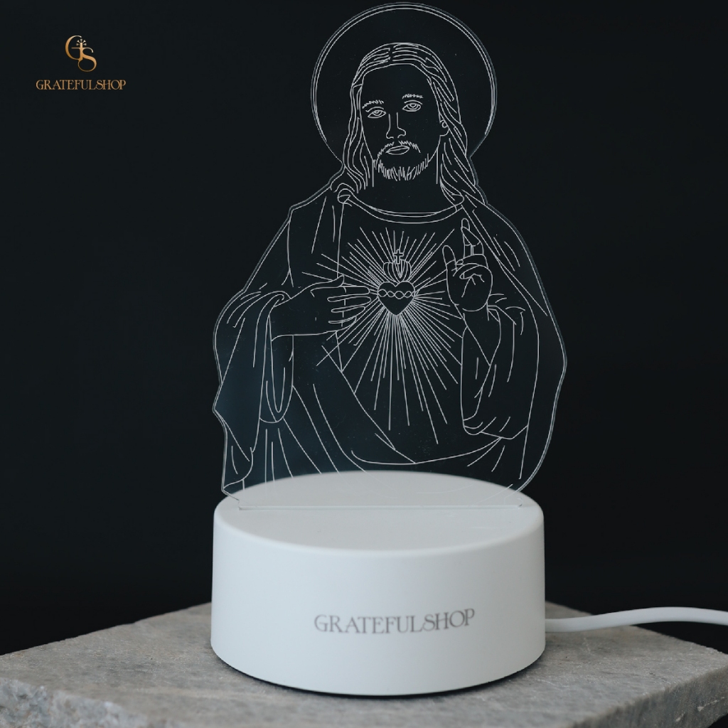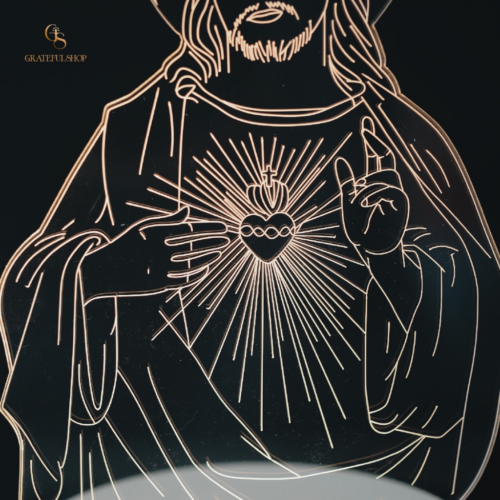 Grateful - Akrilik Hati Kudus Tuhan Yesus LED Lamp/ Lampu Kristen Psalm Pajangan Heart Jesus Bless