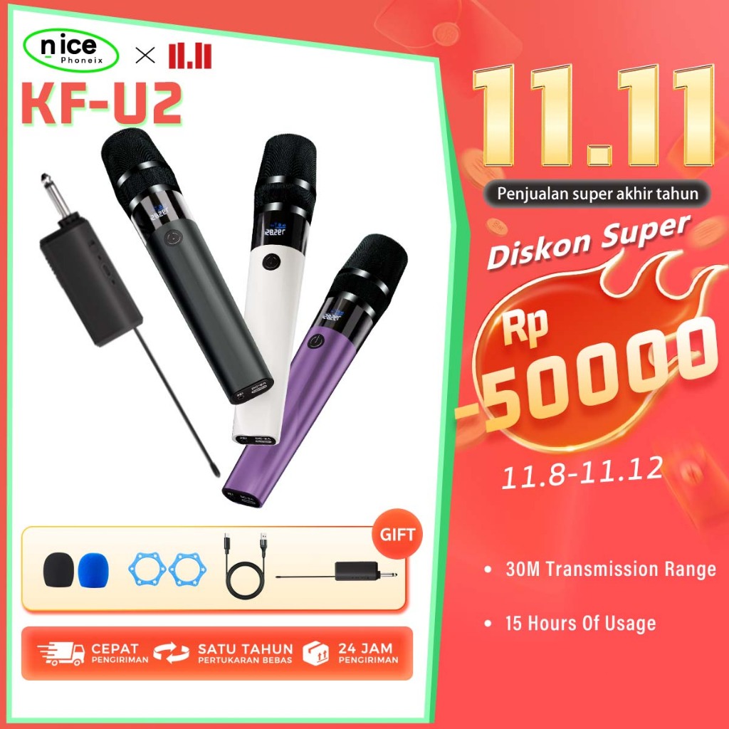 Rechargeable Mic Wireless Karaoke Tanpa Kabel KF-U2 MIC2 MIC1 UHF Mikrofon Karaoke Genggam LED Digital Ganda Nirkabel
