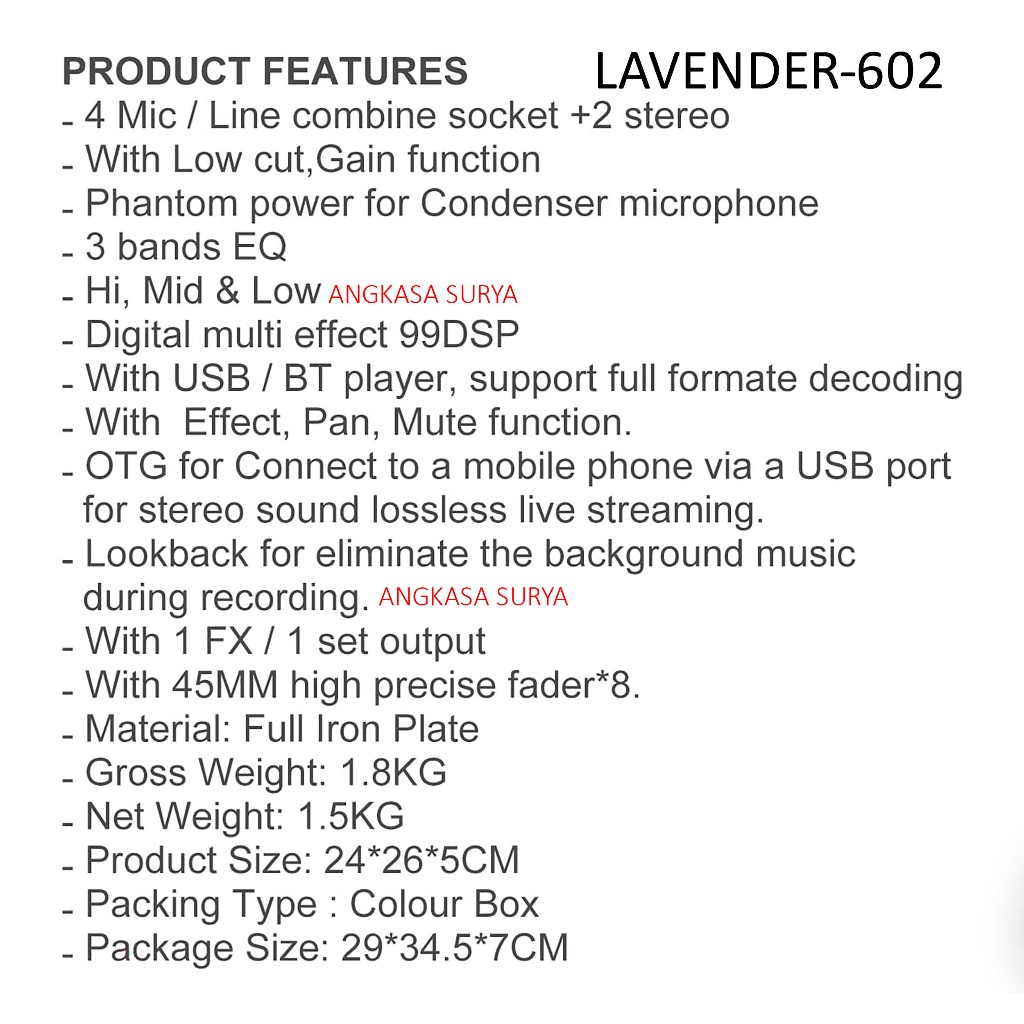MIXER ASHLEY LAVENDER 602 ORIGINAL / MIXER AUDIO ASHLEY LAVENDER602 ORIGINAL