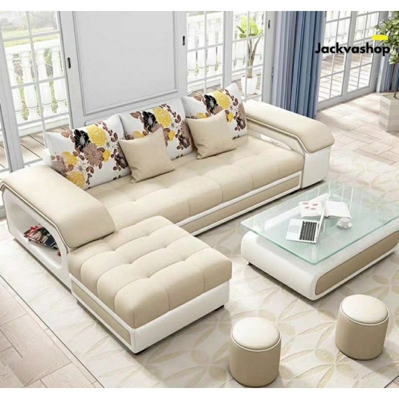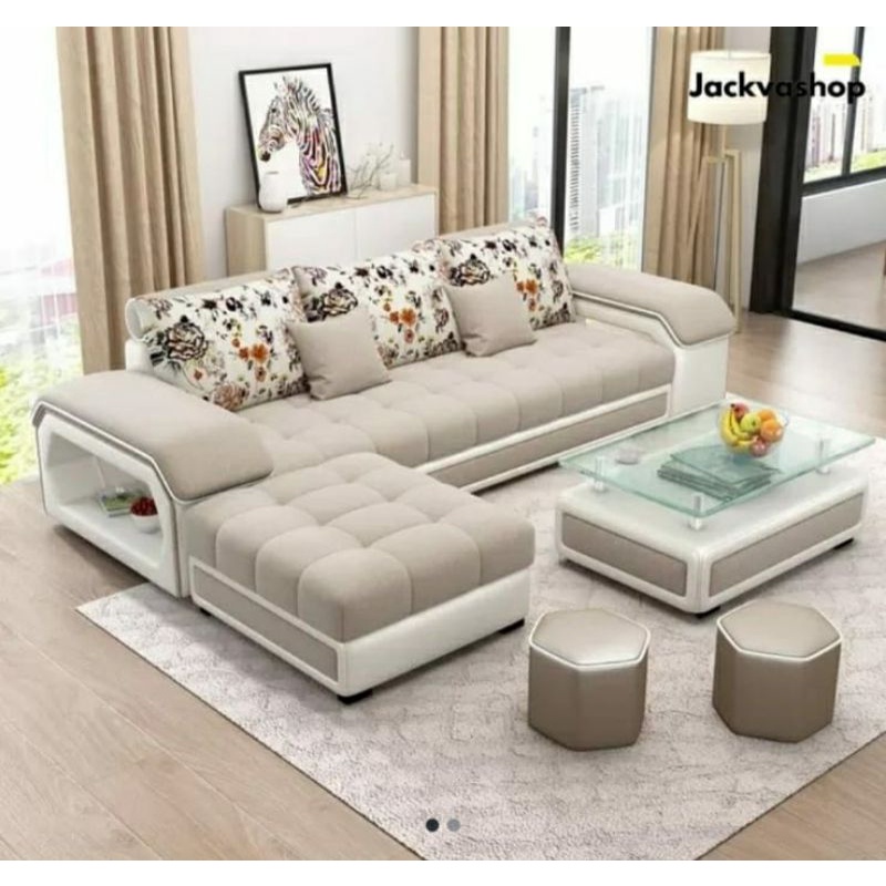 Sofa Minimalis Modern Untuk Ruang Tamu / L Putus / Cream