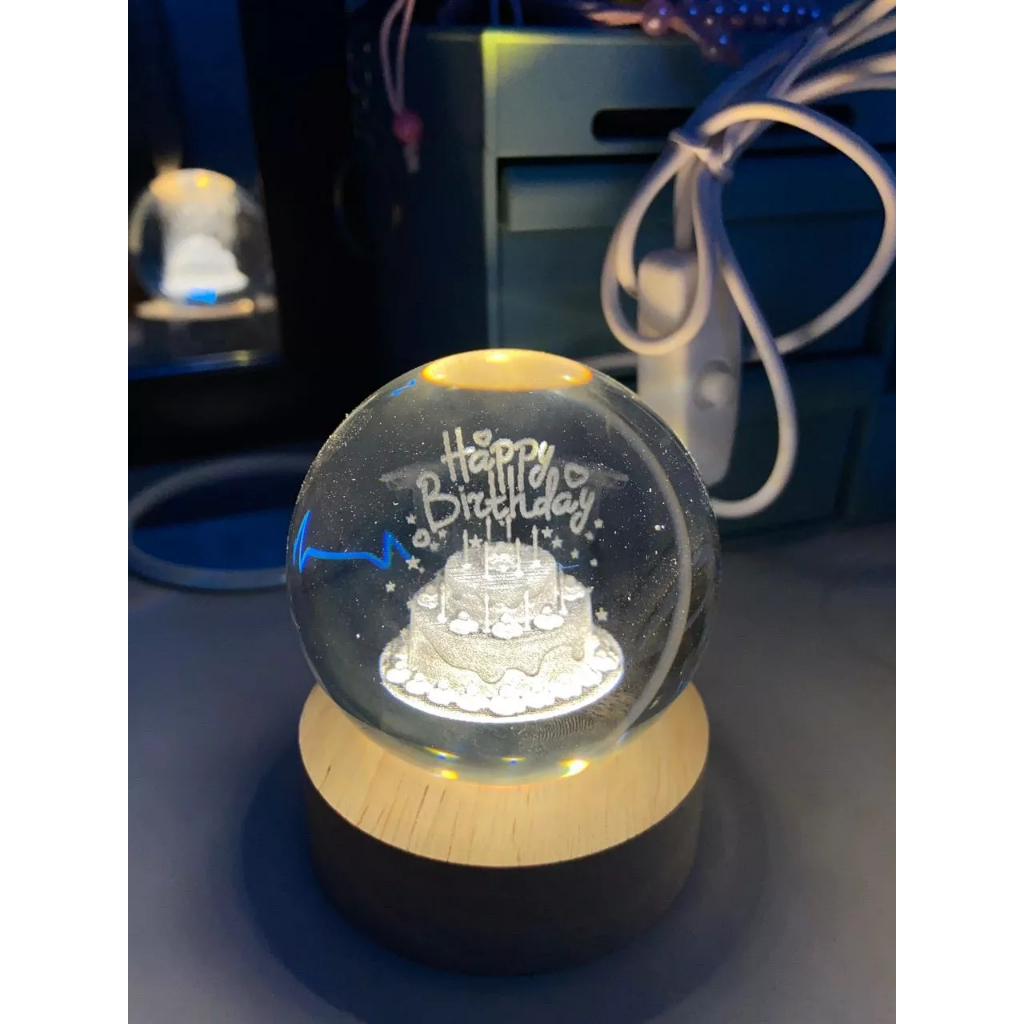 SUITIN Lampu Buat Kamar Tidur Lampu Hias Led Lampu Hias Kamar Tidur Hadiah Spesial Lampu Malam Bulan Bola Kristal Happy Birthday Hadiah