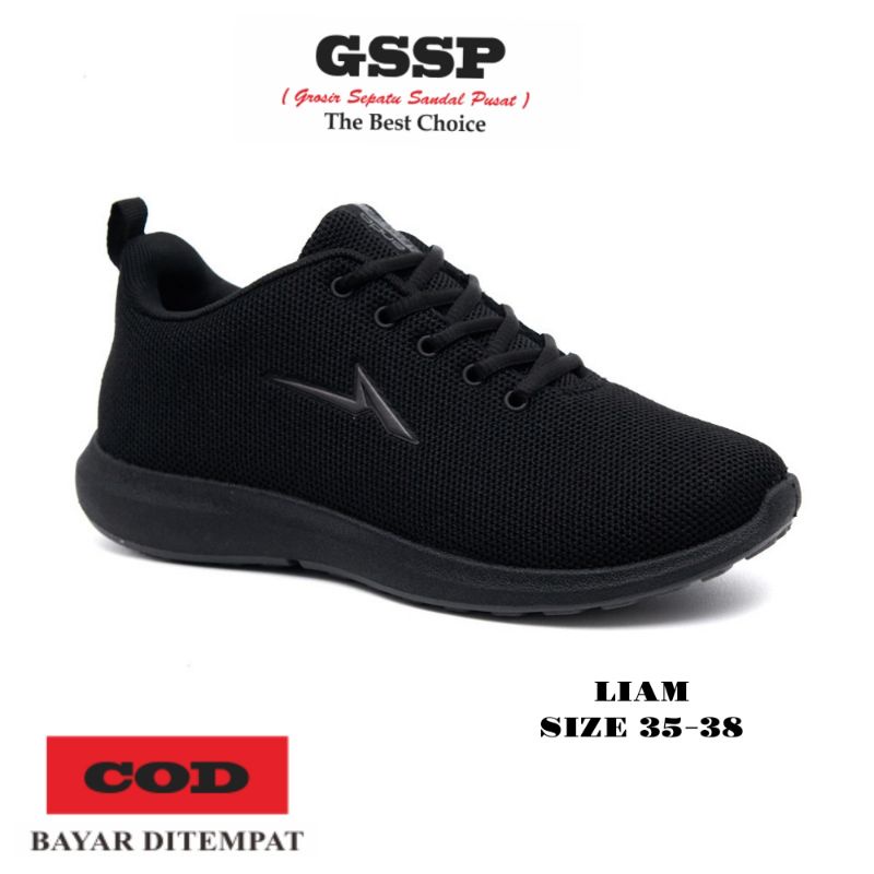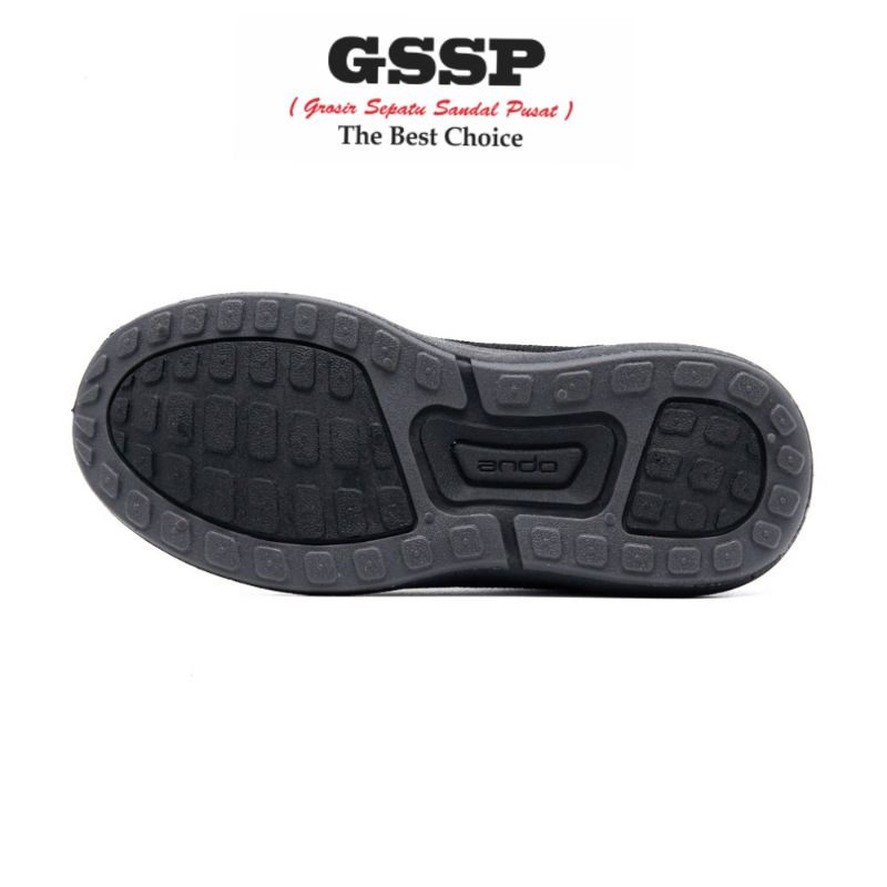 Sepatu sekolah anak laki laki perempuan tanggung Sepatu sneakers dewasa Ando Original LIAM full hitam tali sepatu Sneake