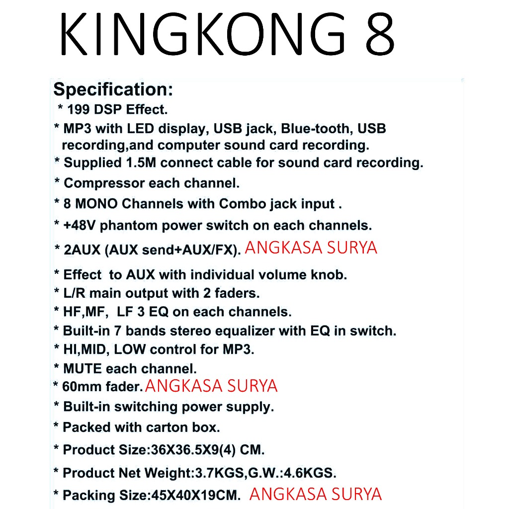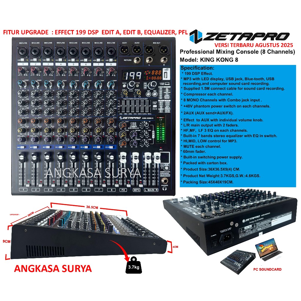 Mixer Zetapro Kingkong 8 Original / Mixer Audio Zetapro Kingkong8 Original 8 Channel Compressor, Effect Reverb 199 Dsp