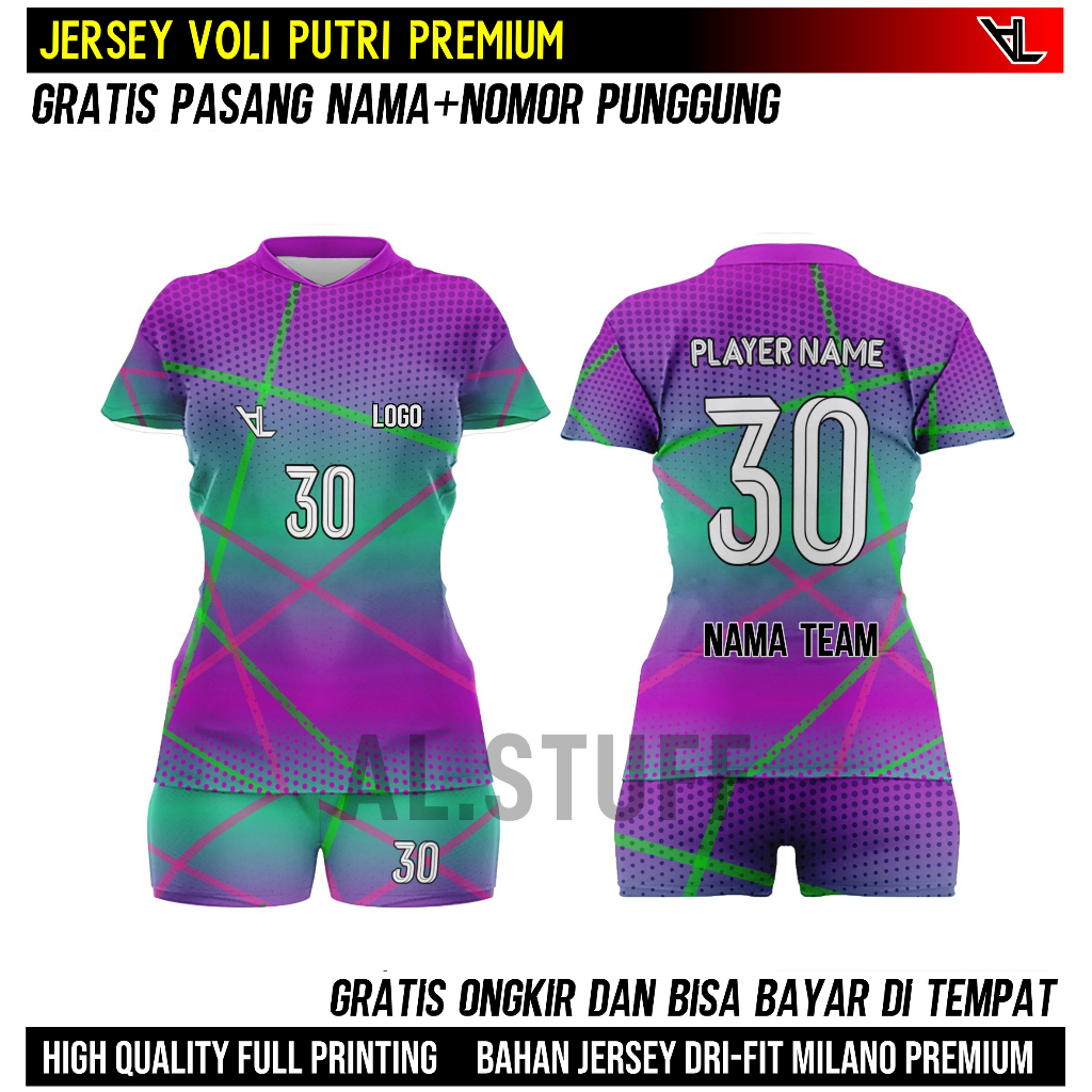 Baju Jersey Voli Putri Premium Terbaru Full Printing 2025 Gratis pasang nama dan nomor punggung