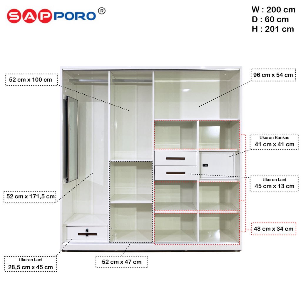 SAPPORO BELLAGIO - Lemari Pakaian Besi Sliding Door | Steel Wadrobe