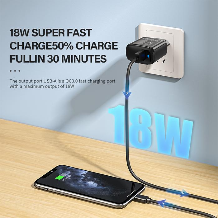 HARGA MIRING ! BASIKE CHARGER FAST CHARGING 18W ASLI MENDUKUNG QC3.0 PENGISIAN CEPAT HITAM - AE87 HITAM MURAH