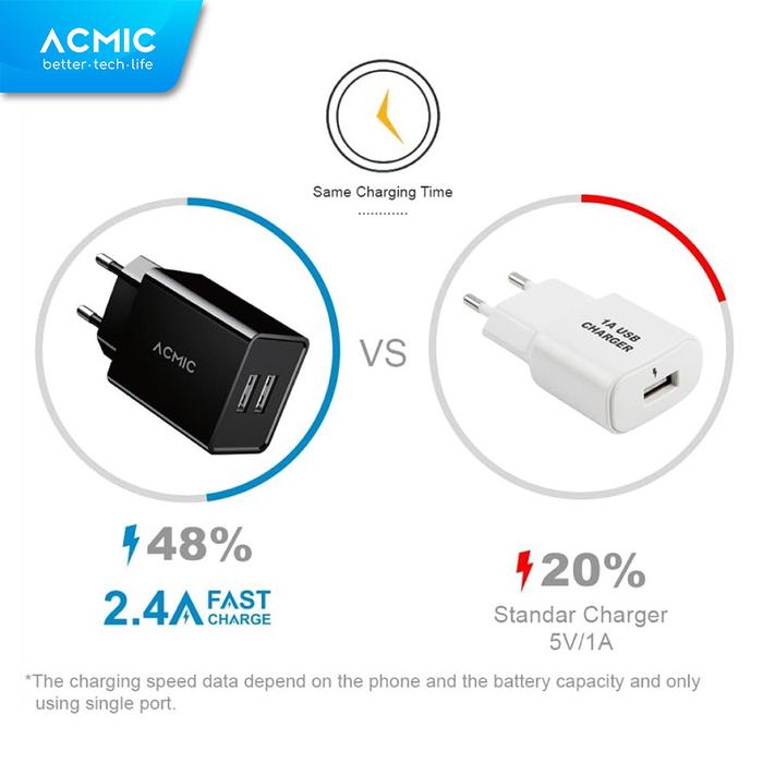 HARGA MIRING ! ACMIC CWC02 DUAL USB 12W KEPALA CHARGER FAST CHARGING ADAPTOR - HITAM MURAH