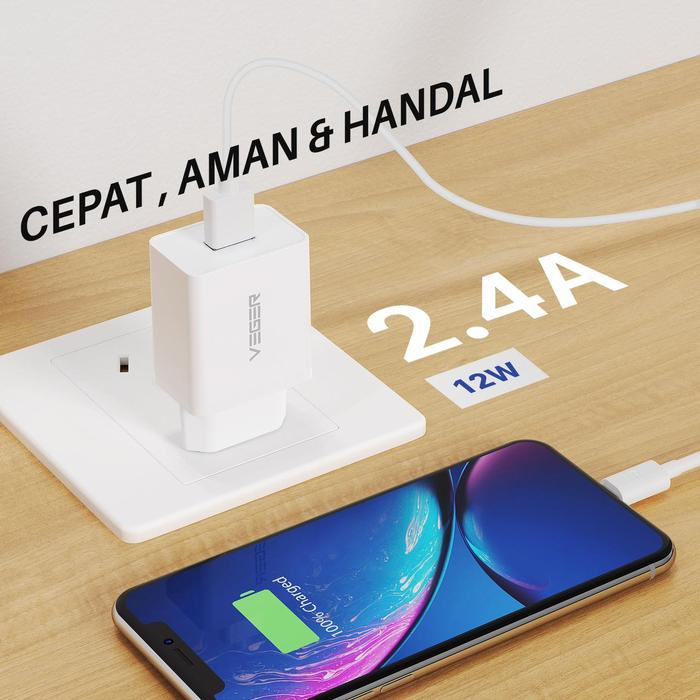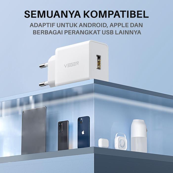 HARGA MIRING ! VEGER WALL CHARGER R1 SINGLE PORT USB OUTPUT 2.4A - PUTIH MURAH