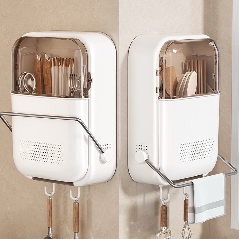 VALUEDA Tempat Sendok Garpu Sumpit Dengan Tutup Rak Wadah Dapur/Kotak Penyimpanan yang Terpasang di Dinding