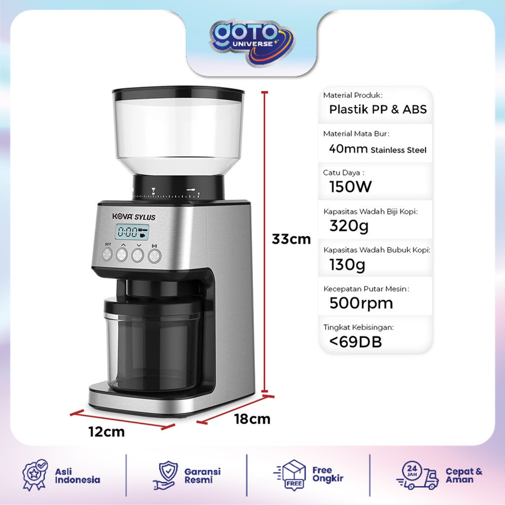 Kova Sylus Coffee Grinder Maker Digital Mesin Giling Biji Kopi Listrik