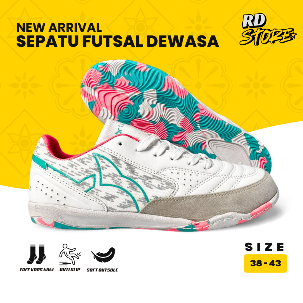 RD STORE - Ortuseight Sepatu Futsal Jogosala Vanquish - Light Grey/ Ultra/ Teal Sepatu Futsal Dewasa Size 38-43