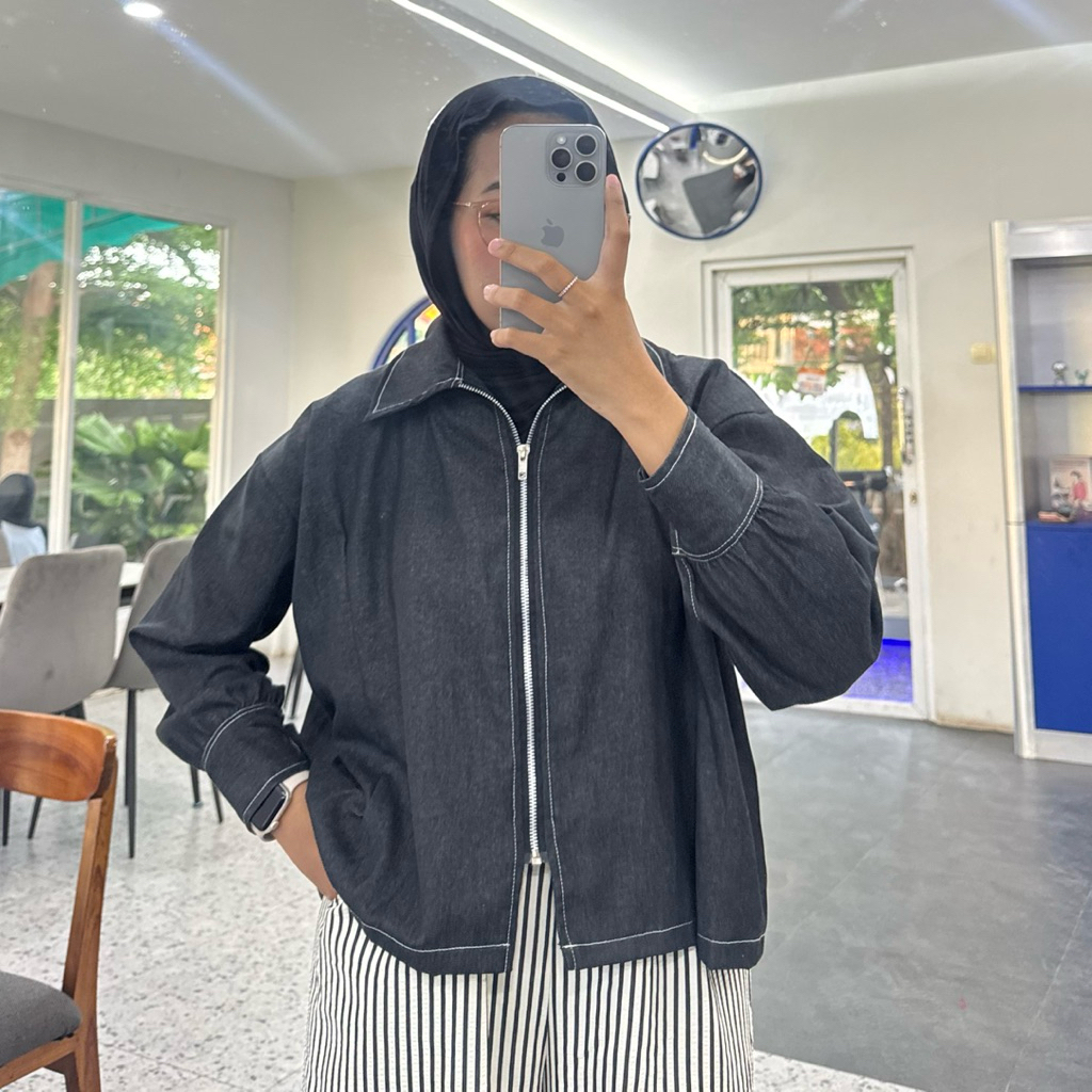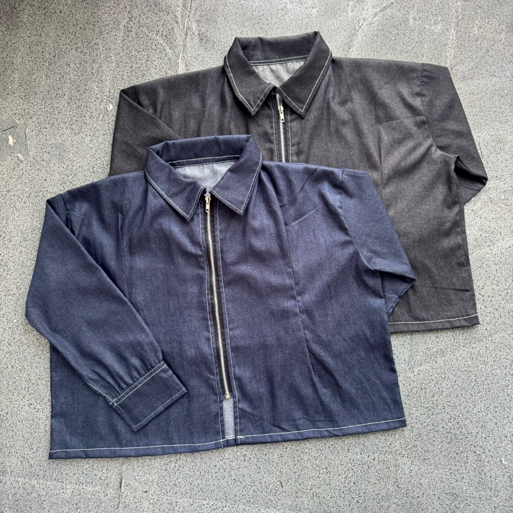 HOLA DENIM SHIRT ATASAN DENIM WANITA JACKET ZIPPER DENIM JACKET KEMEJA ZIPPER TREND FASHION WANITA KEKINIAN TERLARIS