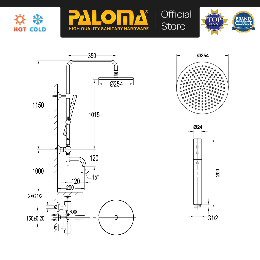 PALOMA FCP 1809 Shower Tiang Set Column Keran Mandi Kran Panas Dingin