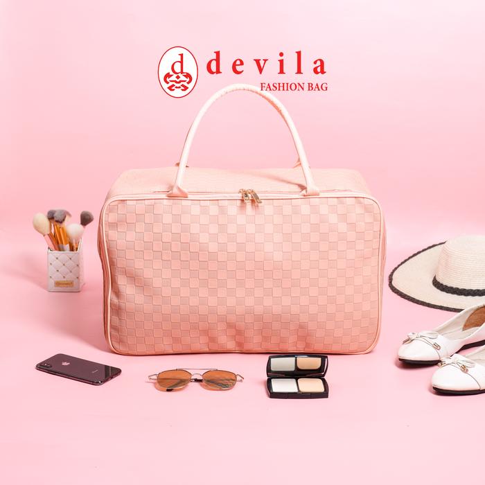 DEVILA LUXURY NUDE PINK BOXES WATERPROOF TRAVEL BAG JUMBO SIZE - TAS KOPER WATERPROOF UKURAN BESAR MOTIF KOTAK MEWAH MURAH PEREMPUAN MUDIK