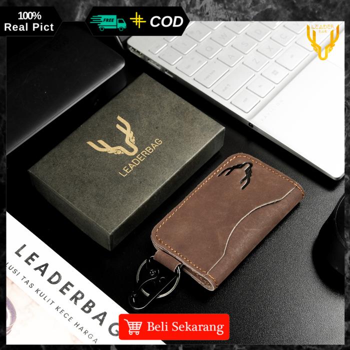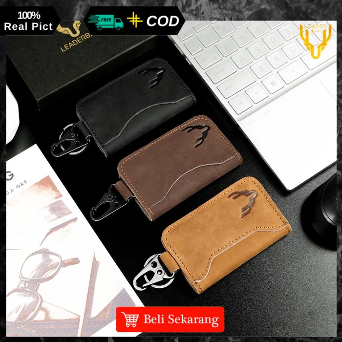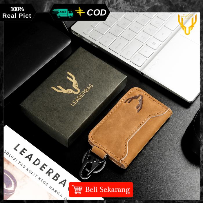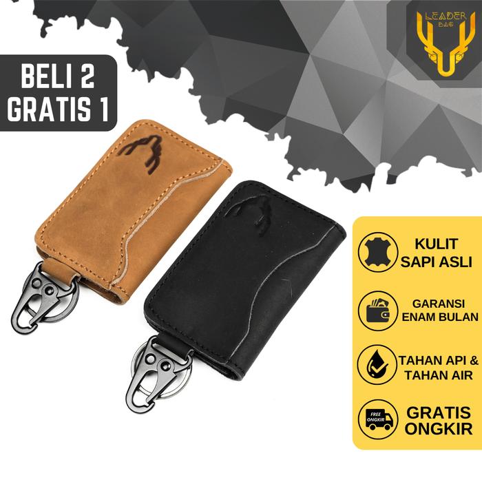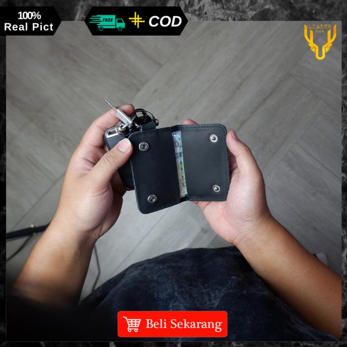Dompet Stnk Mobil Kulit Sapi Asli Leaderbag Terbaru Hitam Dan Coklat Waterproof Gantungan Kunci Motor Premium - Hitam