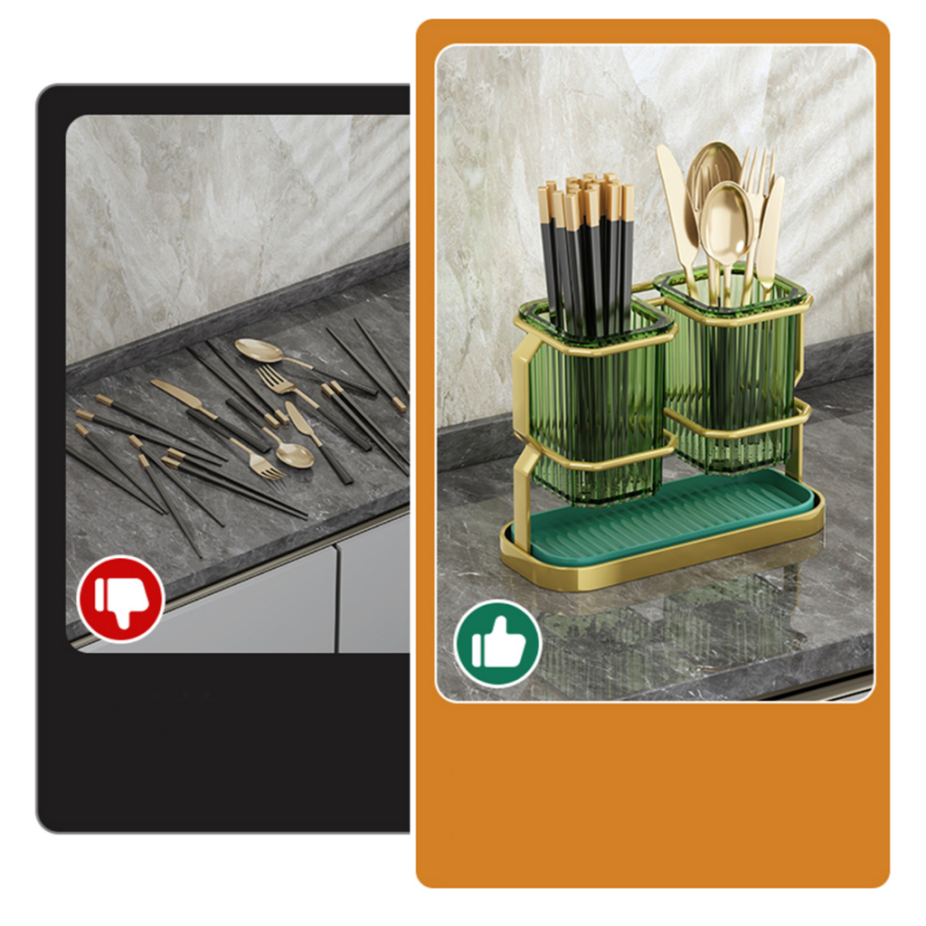 Rak Penyimpanan Sendok Garpu Sumpit Dinding Minimalis dengan Peniris Air / Tempat Sendok Cutlery Holder Serbaa / Rak Sen